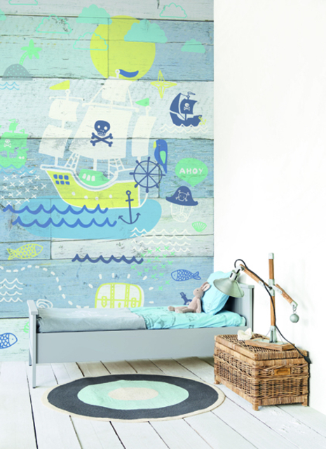 | Elementer: | Brædder, Børneværelse, Fotostat, Fototapet, Vand, Skyer, Fisk, Pirat, Skibe | |