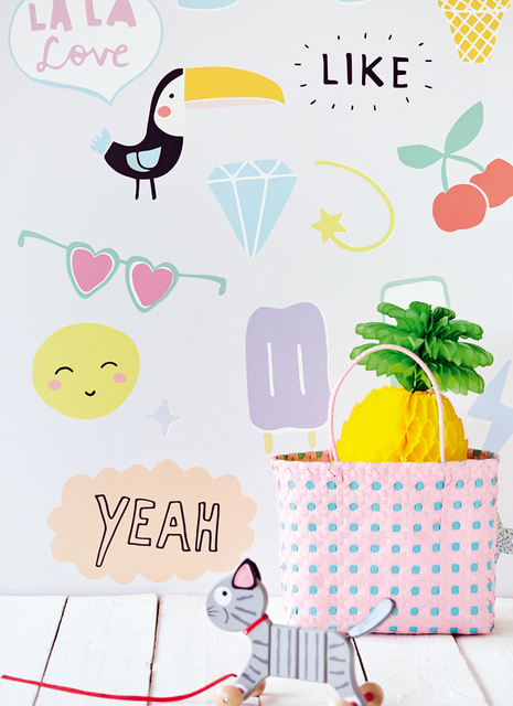 | Elementer: | Fugle, Hjerter, Blomster, Palmer, Dyr, Børneværelse, Fotostat, Fototapet | |
